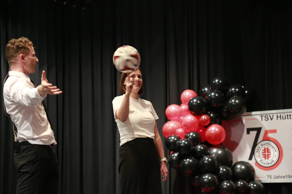 Für weitere Abwechslung beim unterhaltsamen Festprogramm für Jung und Alt sorgten die Peewee Dancers von der Abteilung Turnen/Leichtathletik/Akrobatik mit zwei tollen Tanzauftritten. Schließlich heizte der Jongleur und Fußball-Freestyler Sebastian Landauer mit seiner lustigen Fußballcomedyeinlage und einer beeindruckenden Lightshow die Stimmung im Bürgersaal kräftig an.